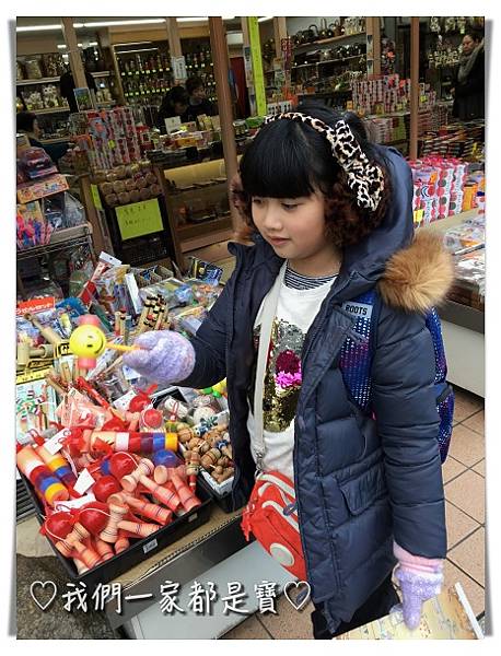 小寶妹看到店外賣的小玩物,一個個把玩一下,