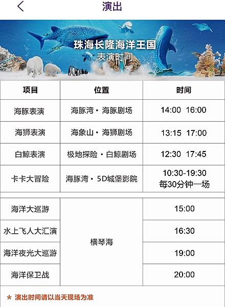 (可以用APP查演出時間,以下的時間表是最近的,和我去的時間不同哦)